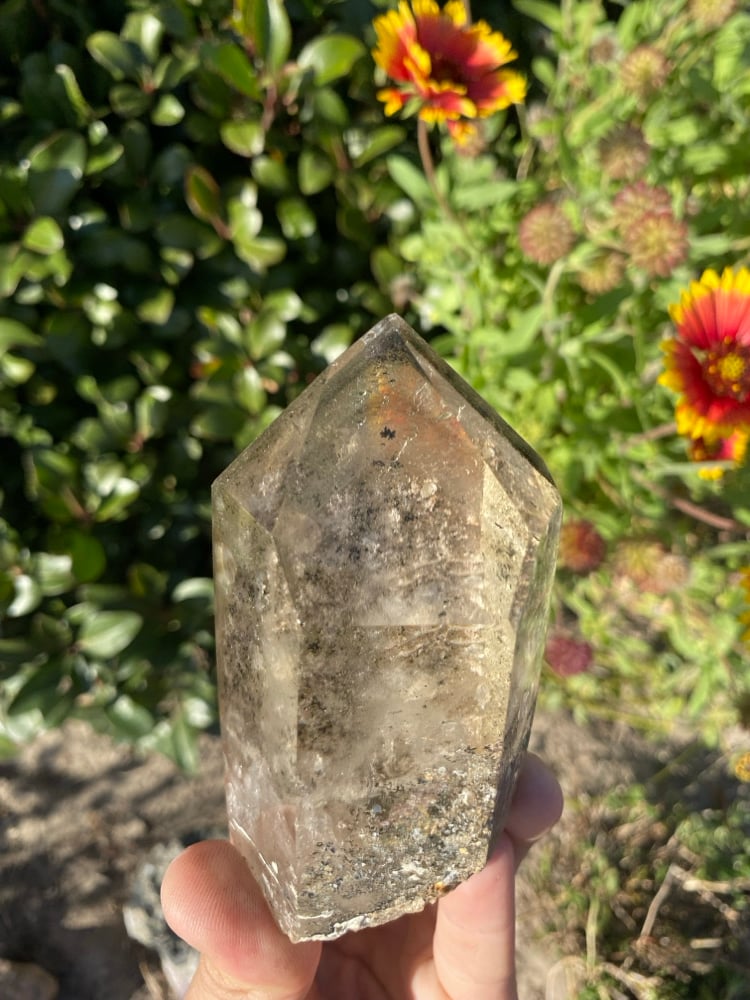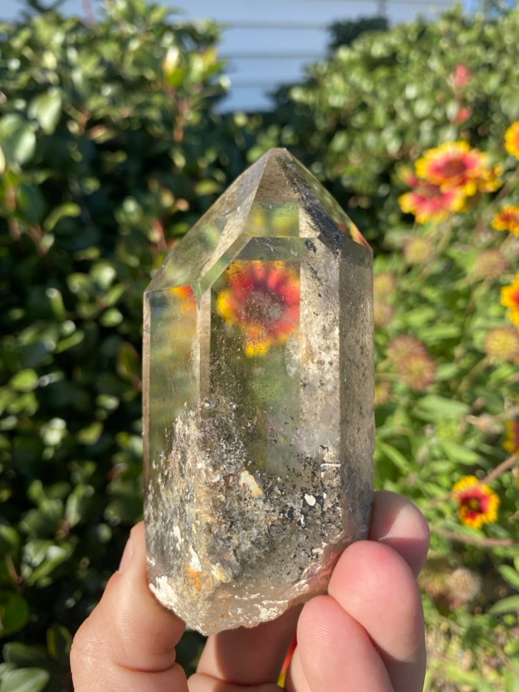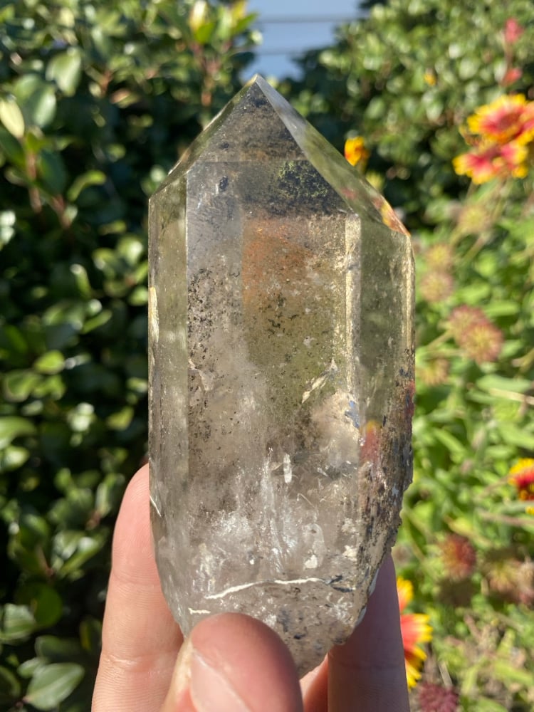 This point has amazing clarity allowing you to see the many mineral inclusions inside including hematite, chlorite, and feldspar, which resemble miniature landscapes or gardens inside the stone giving it the popular name