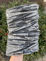 Orthoceras are extinct marine cephalopods related to modern squid and octopuses. The fossils are often polished to highlight the intricate and beautiful chambered structure of the shell.